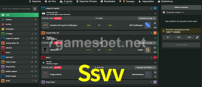 O Ssvv oferece uma grande seleção de opções de apostas em e-sports com probabilidades competitivas